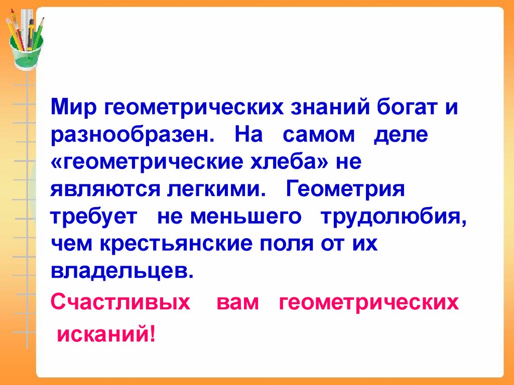 Мир геометрических знаний богат иразнообразен. На самом деле
