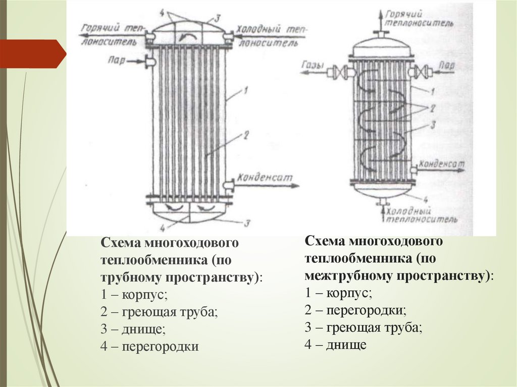 При решении вопроса о том, какой из теплоносителейпропускать по трубам, какой с наружной стороны труб, надо