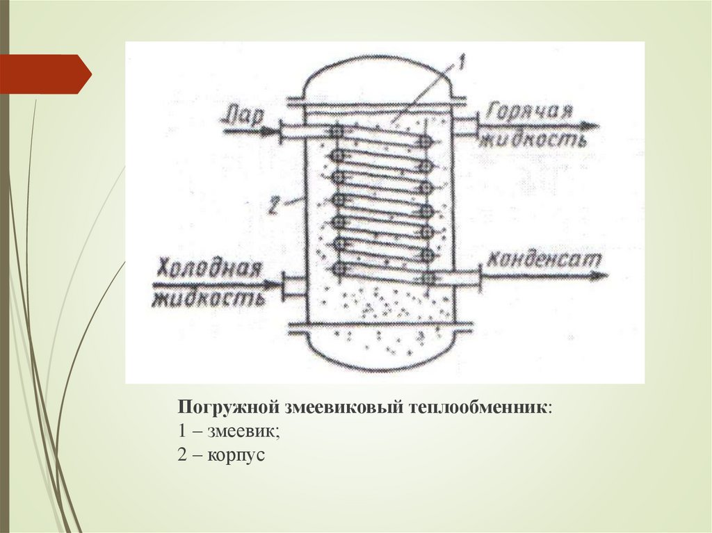 Погружной змеевиковый теплообменник:1 – змеевик;