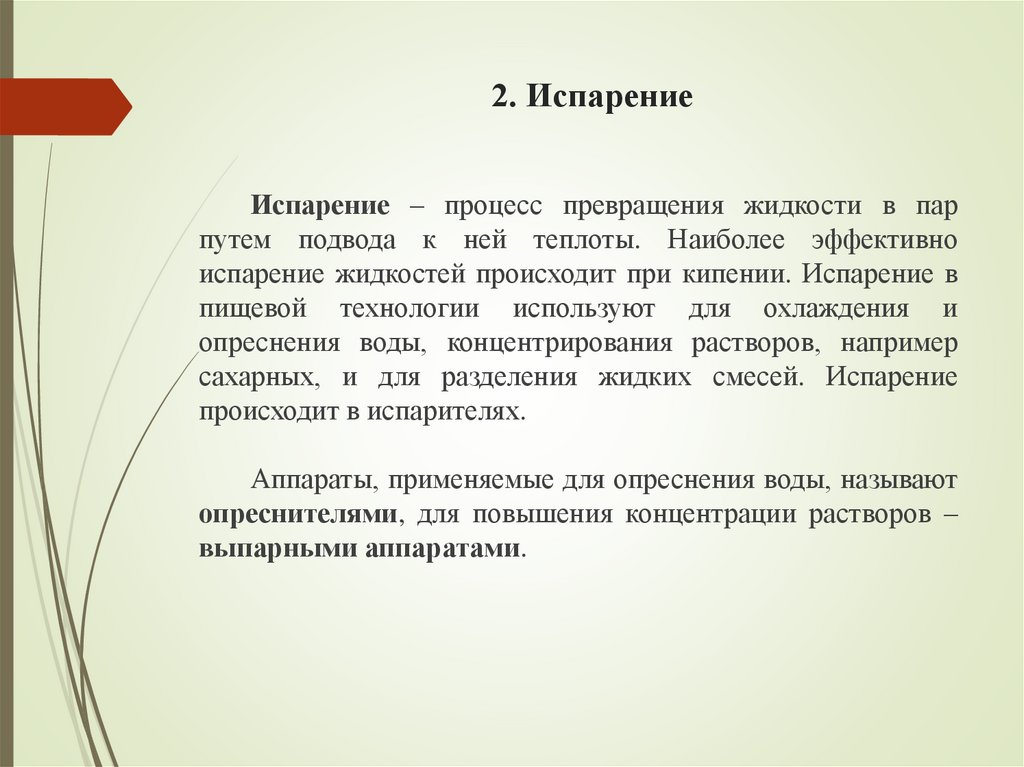 2. ИспарениеИспарение – процесс превращения жидкости в пар