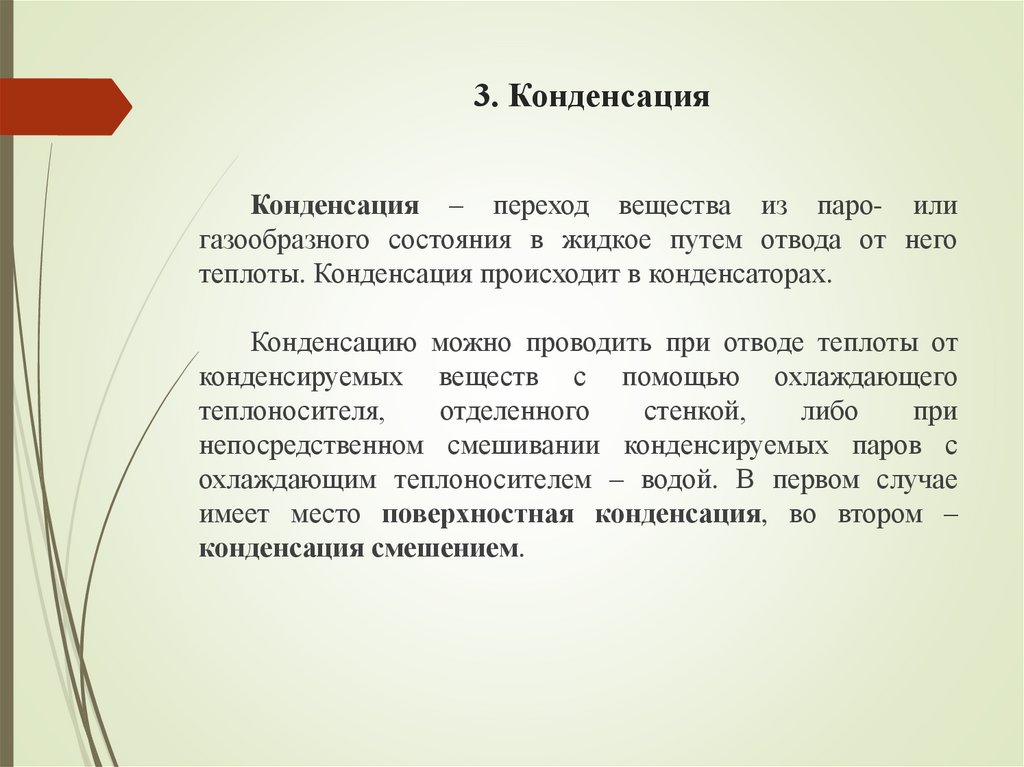 3. КонденсацияКонденсация – переход вещества из паро- или