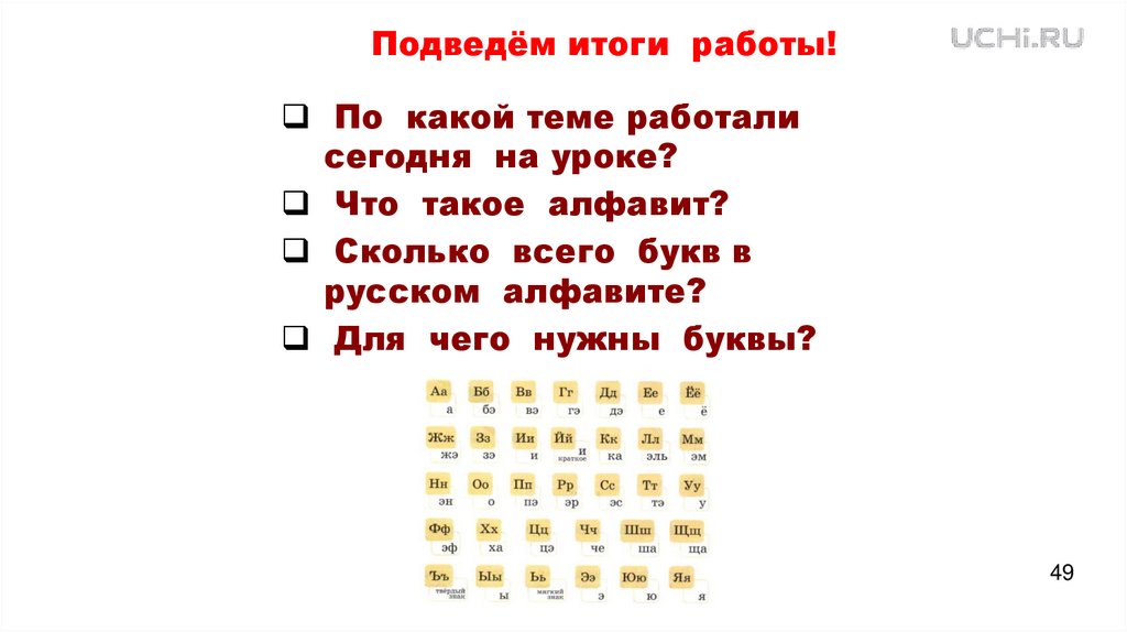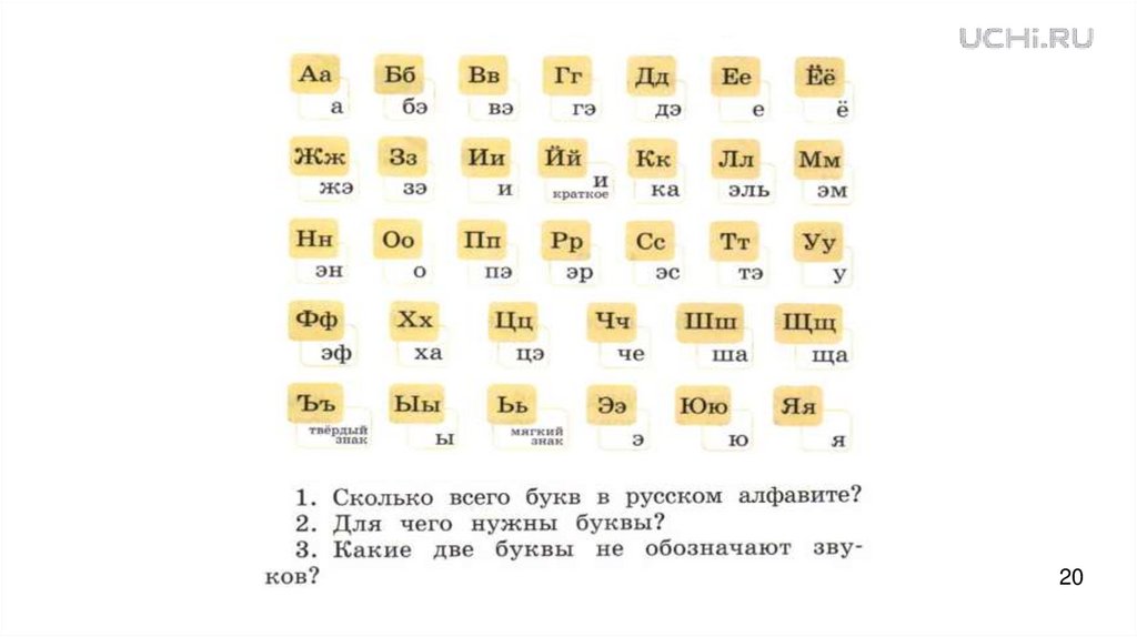 — Сколько букв в русском алфавите, сколько гласных, а сколько согласных.