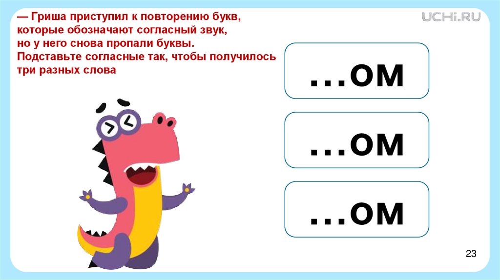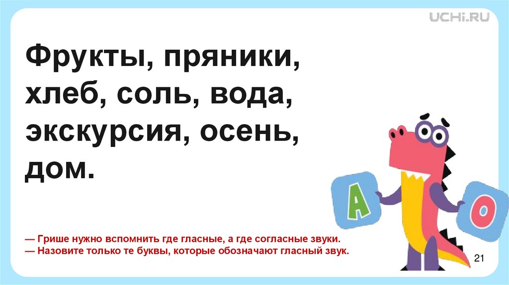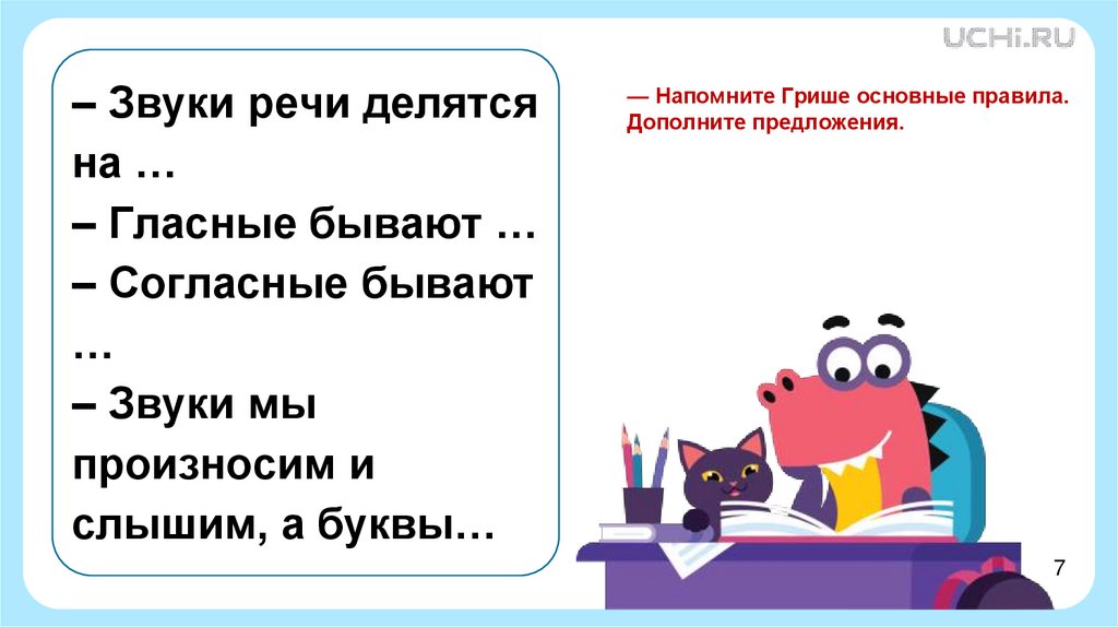 — Грише нужно вспомнить где гласные, а где согласные звуки.