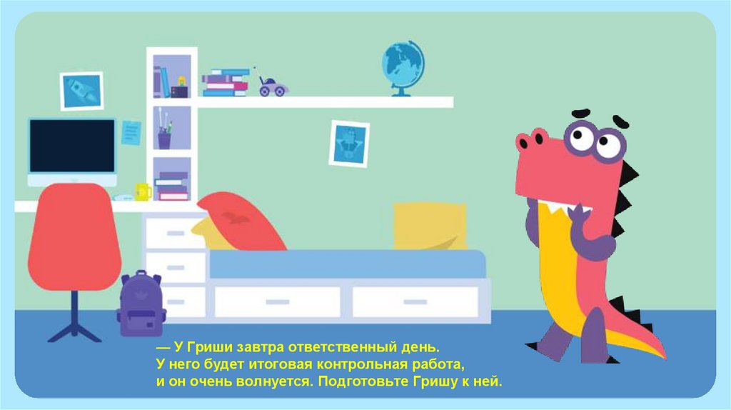 — У Гриши завтра ответственный день.У него будет итоговая контрольная работа,