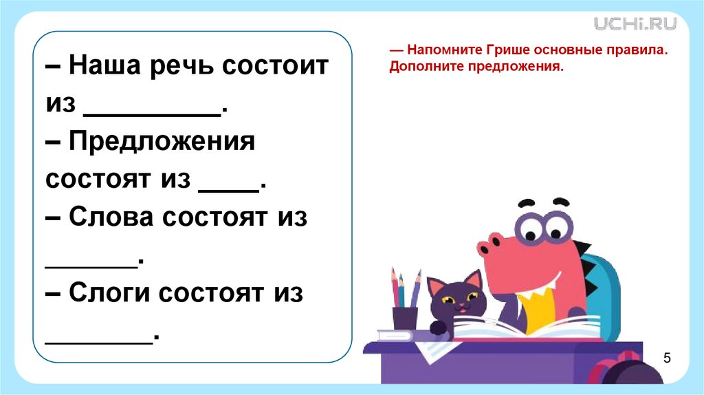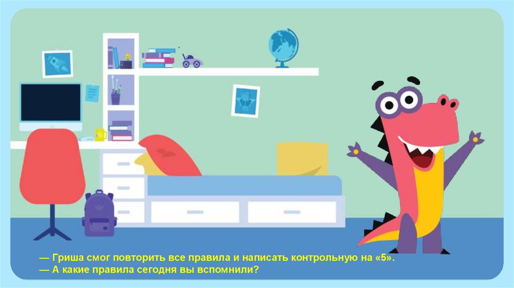 — Гриша смог повторить все правила и написать контрольную на «5».— А какие правила сегодня вы вспомнили?