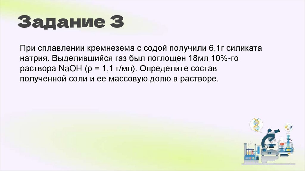 Задание 3При сплавлении кремнезема с содой получили 6,1г силиката