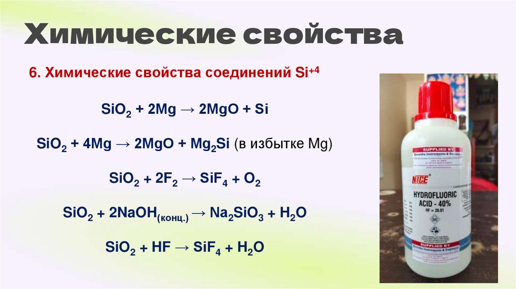 SiO2 + 4Mg → 2MgO + Mg2Si (в избытке Mg)