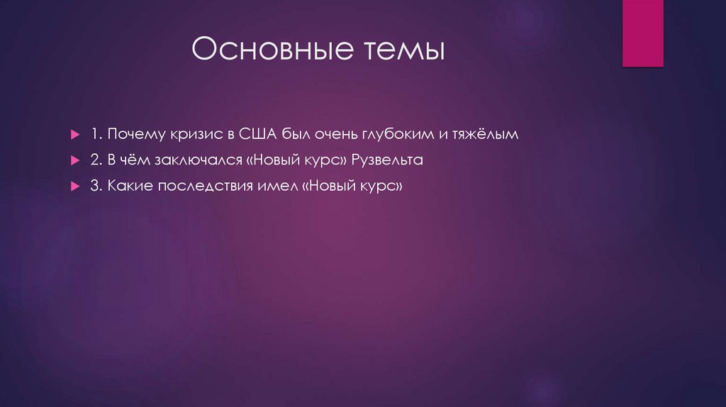 Основные темы1. Почему кризис в США был очень глубоким и тяжёлым