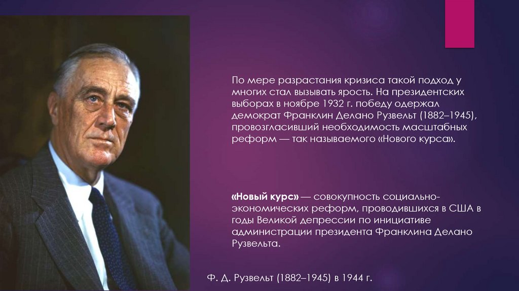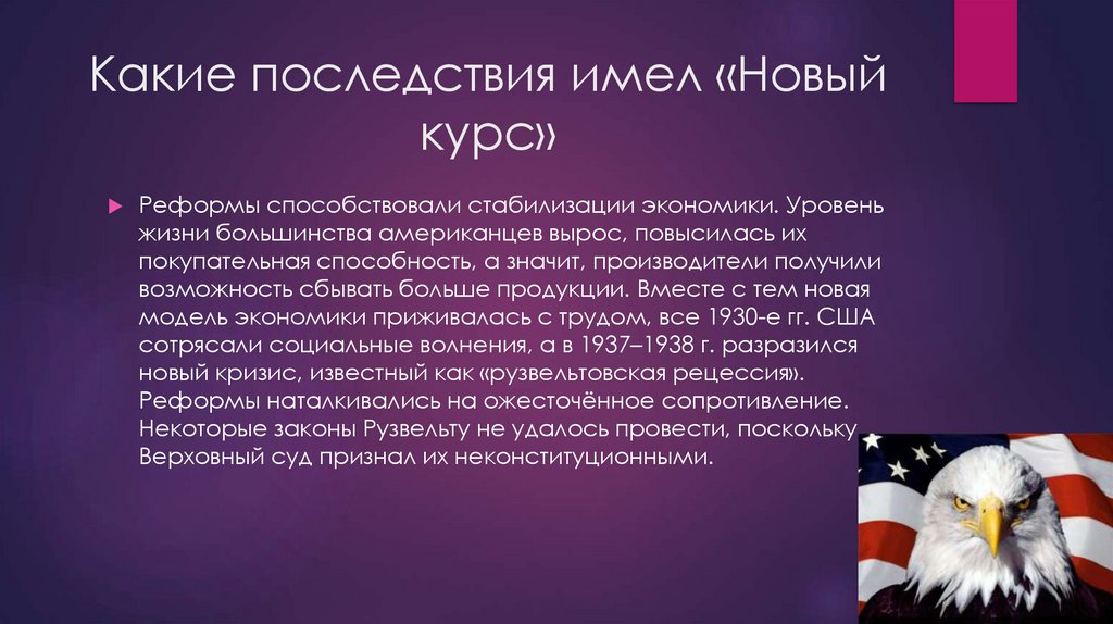 «Новый курс» — совокупность социальноэкономических реформ, проводившихся в США в
