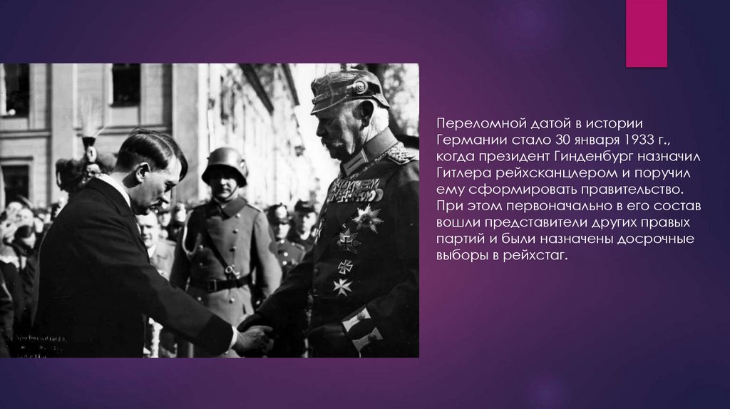 Переломной датой в историиГермании стало 30 января 1933 г.,