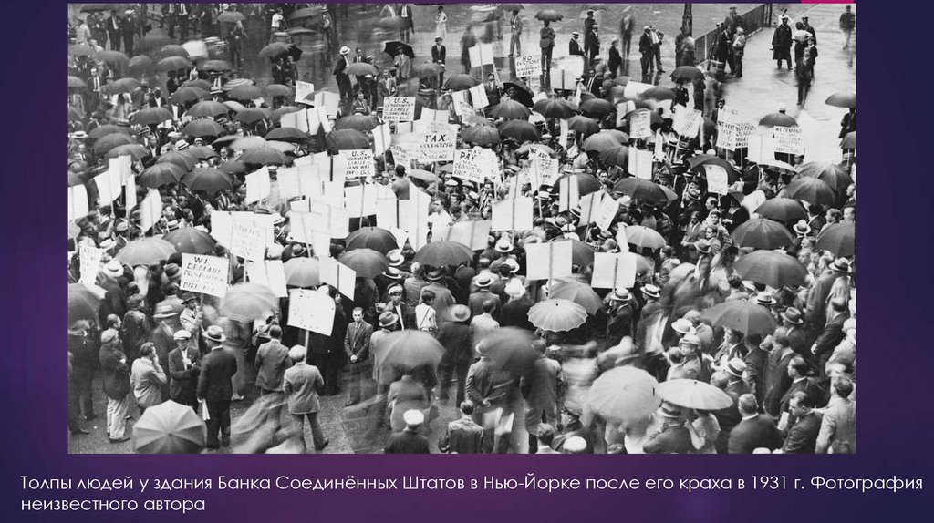 Толпы людей у здания Банка Соединённых Штатов в Нью-Йорке после его краха в 1931 г. Фотографиянеизвестного автора