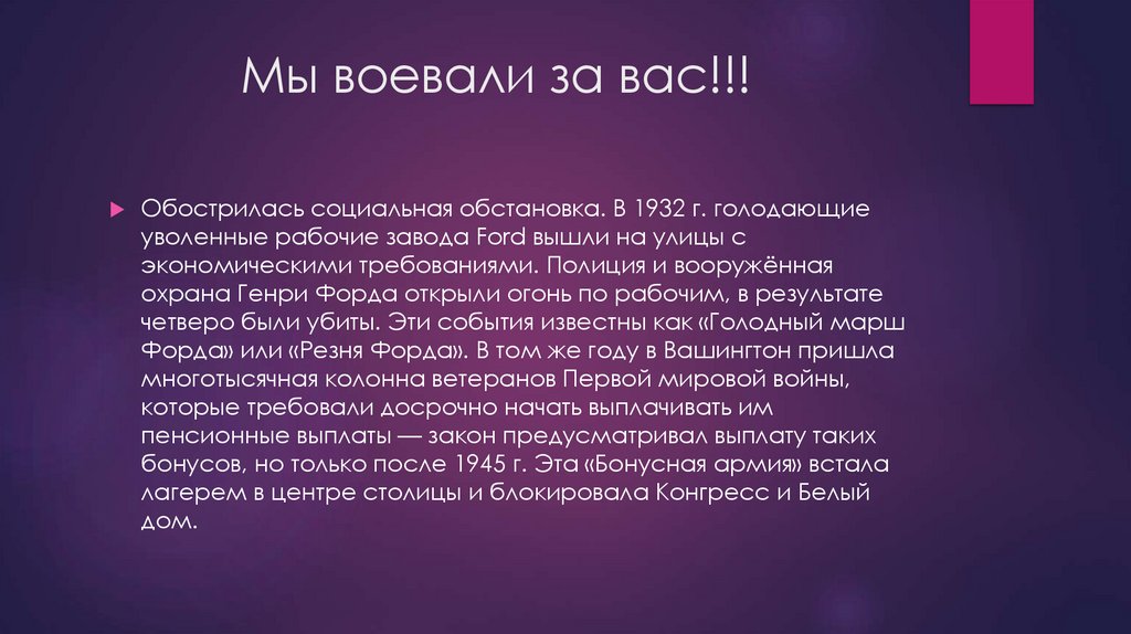 бонусов, но только после 1945 г. Эта «Бонусная армия» встала