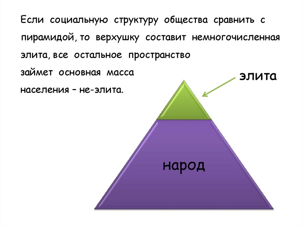 Если социальную структуру общества сравнить спирамидой, то верхушку составит немногочисленная
