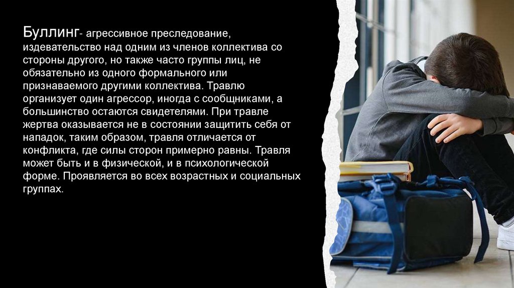 Буллинг- агрессивное преследование,издевательство над одним из членов коллектива со