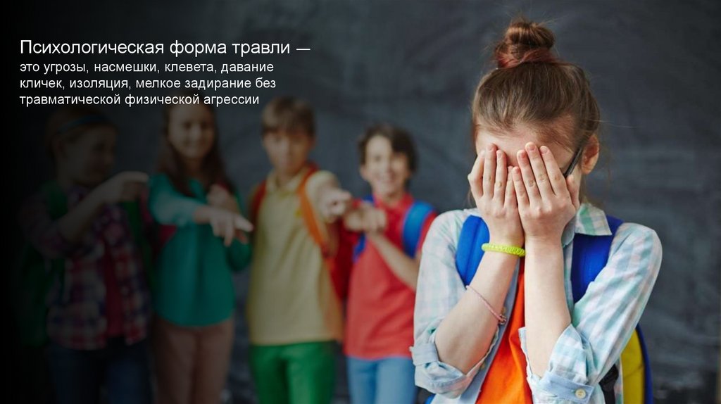 Психологическая форма травли —это угрозы, насмешки, клевета, давание