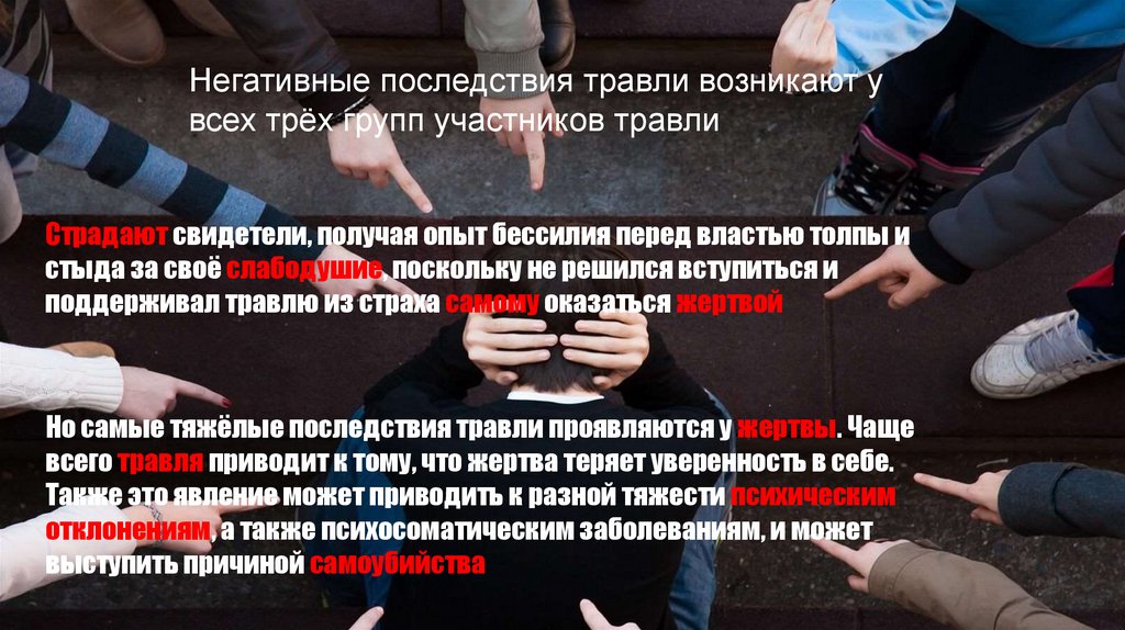 Негативные последствия травли возникают увсех трёх групп участников травли