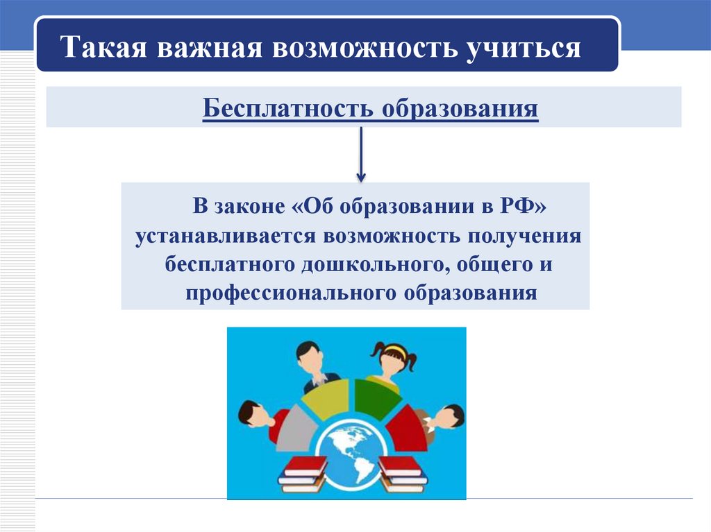 Бесплатность образованияВ законе «Об образовании в РФ»