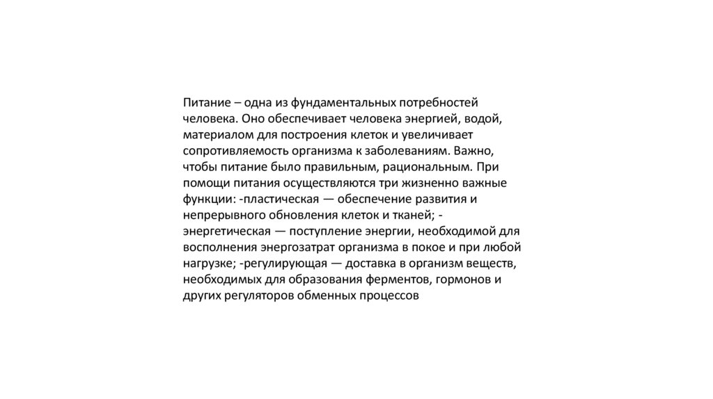 Питание – одна из фундаментальных потребностейчеловека. Оно обеспечивает человека энергией, водой,