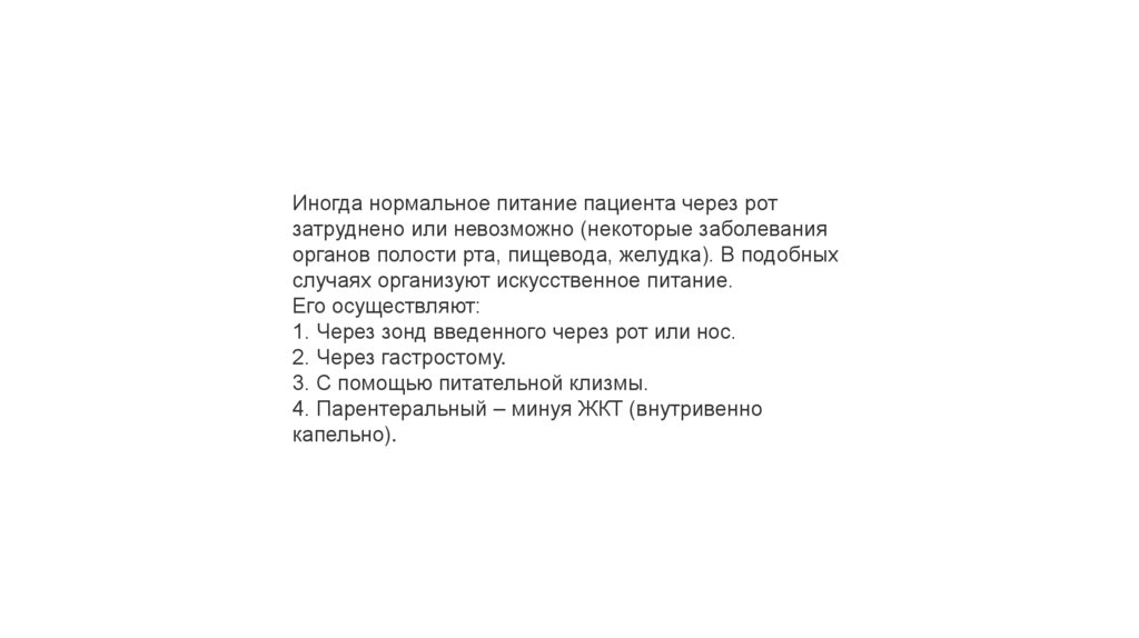 Иногда нормальное питание пациента через ротзатруднено или невозможно (некоторые заболевания