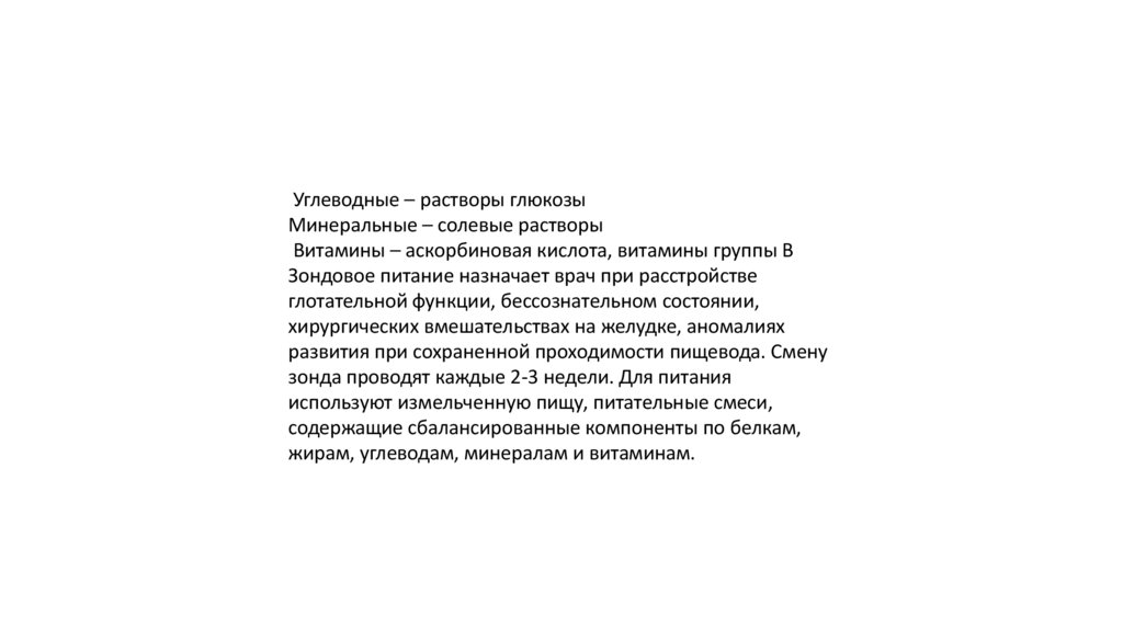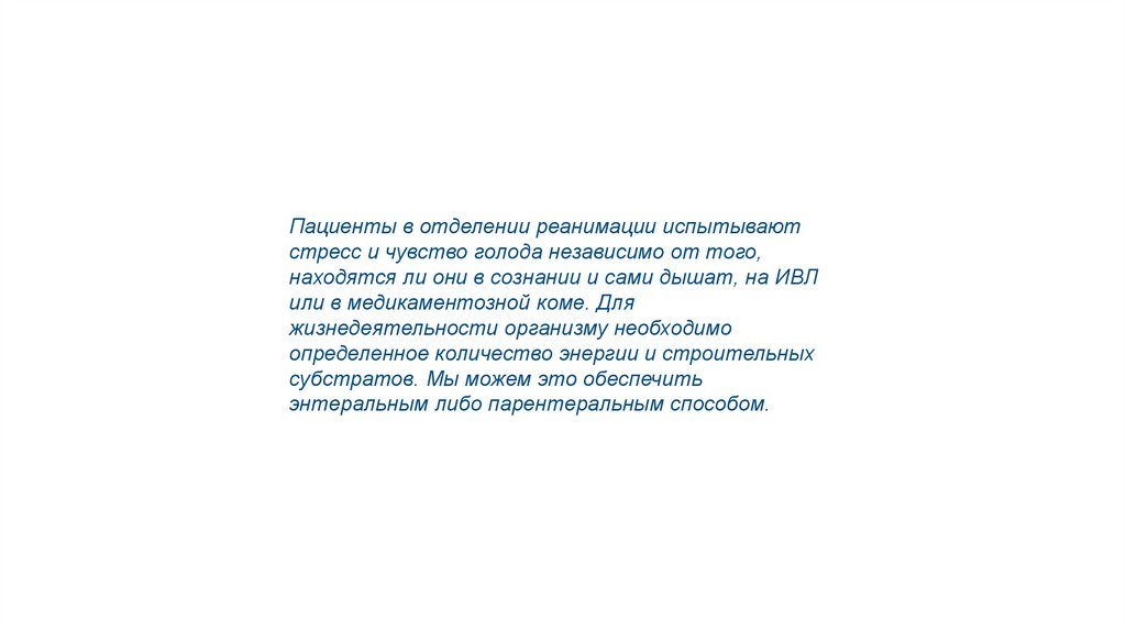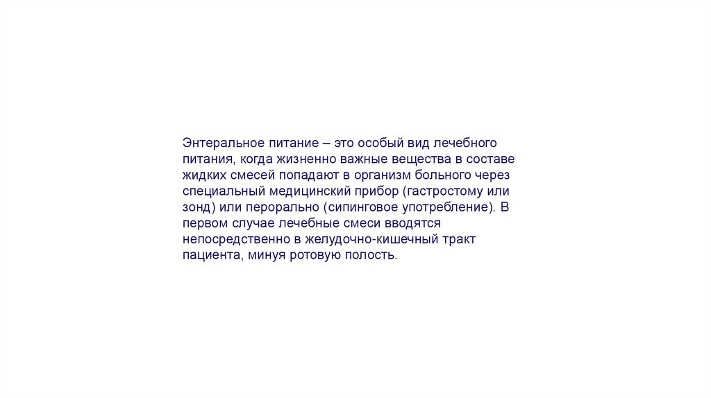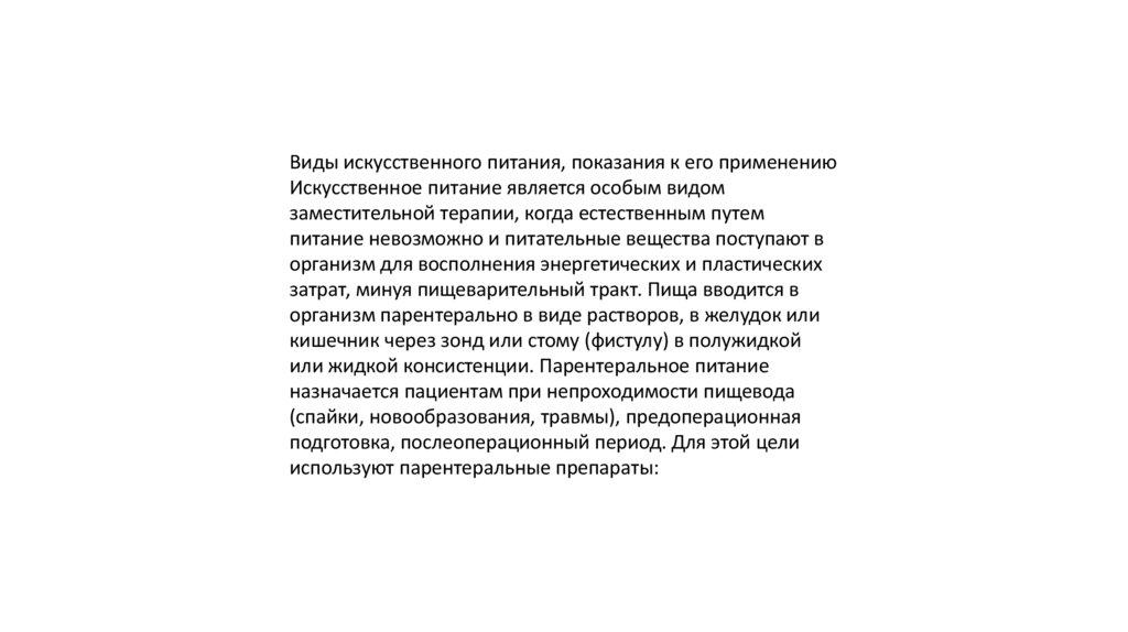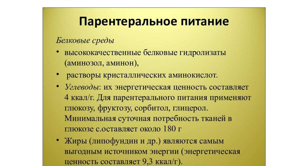 затрат, минуя пищеварительный тракт. Пища вводится в