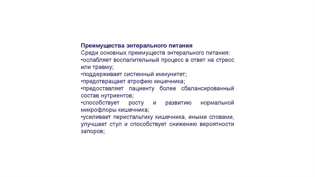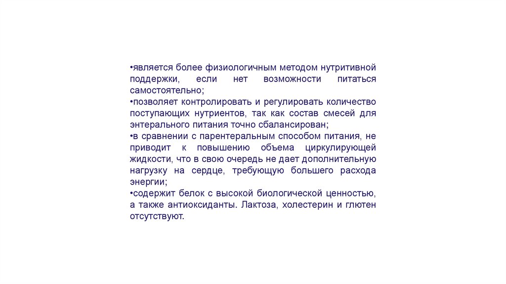 Преимущества ЭП в сравнении с парентеральным:•компоненты специализированной смеси, попадая в