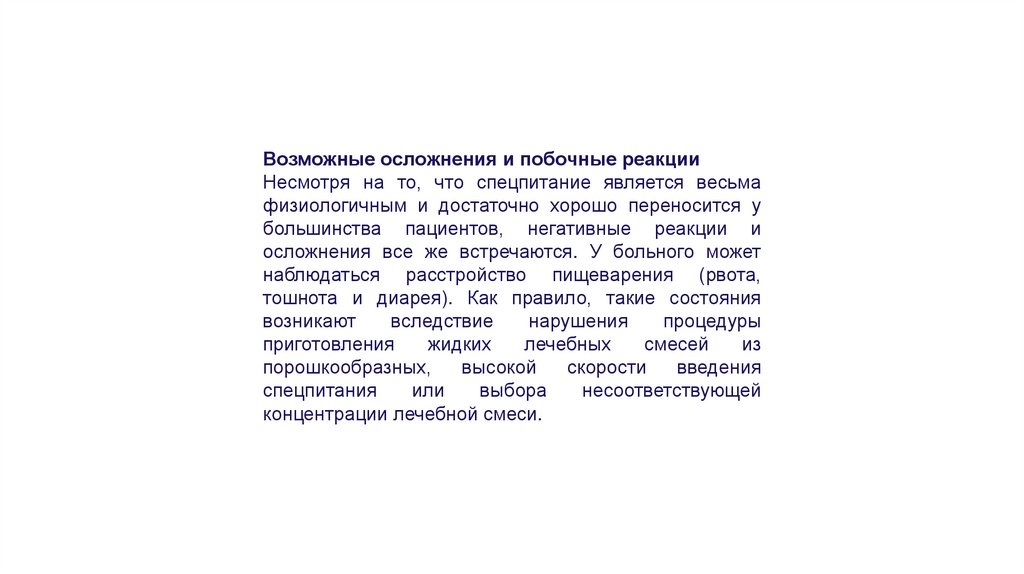 Возможные осложнения и побочные реакцииНесмотря на то, что спецпитание является весьма