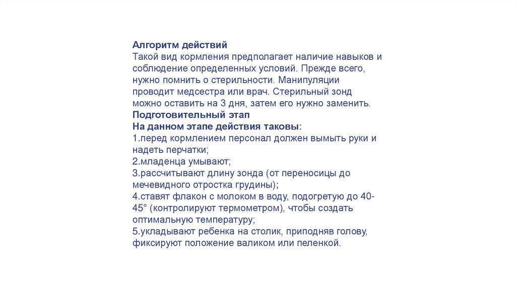 Алгоритм действийТакой вид кормления предполагает наличие навыков и