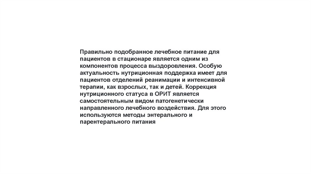 Правильно подобранное лечебное питание дляпациентов в стационаре является одним из