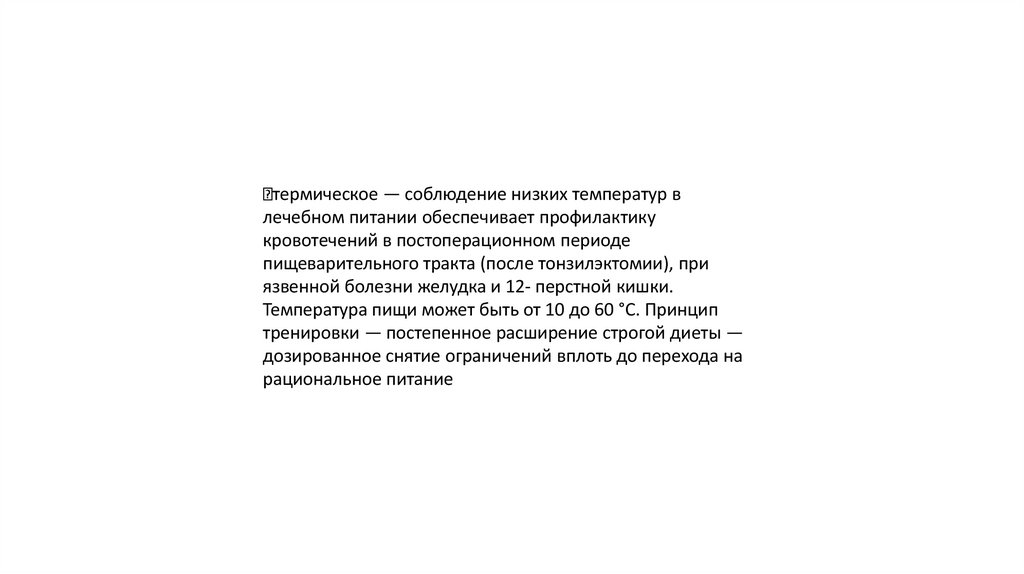 термическое — соблюдение низких температур влечебном питании обеспечивает профилактику