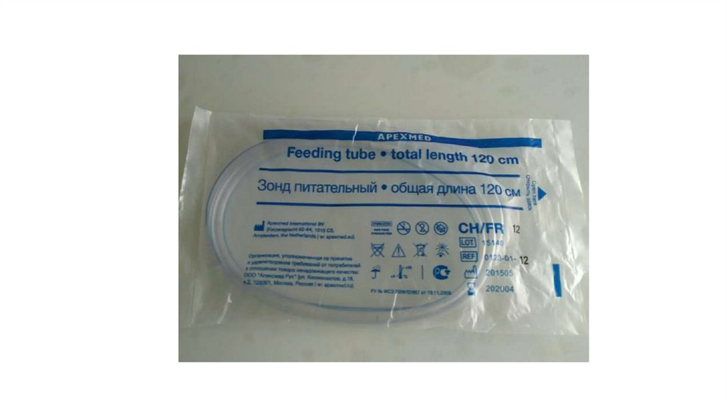 10.Набирают в шприц молоко, присоединяют к зонду, медленно вводят молоко. Такая