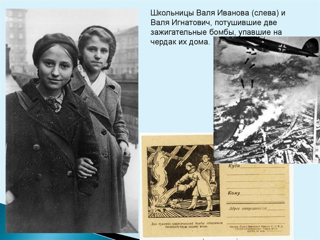 Школьницы Валя Иванова (слева) иВаля Игнатович, потушившие две