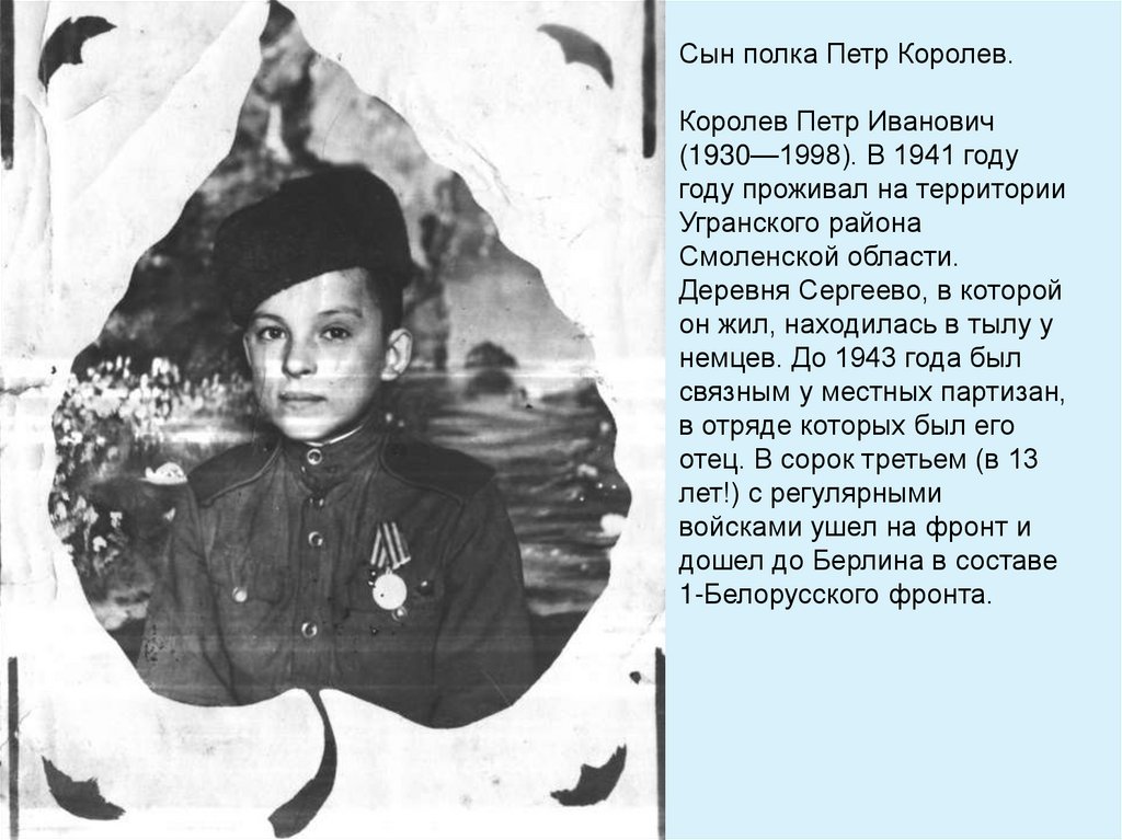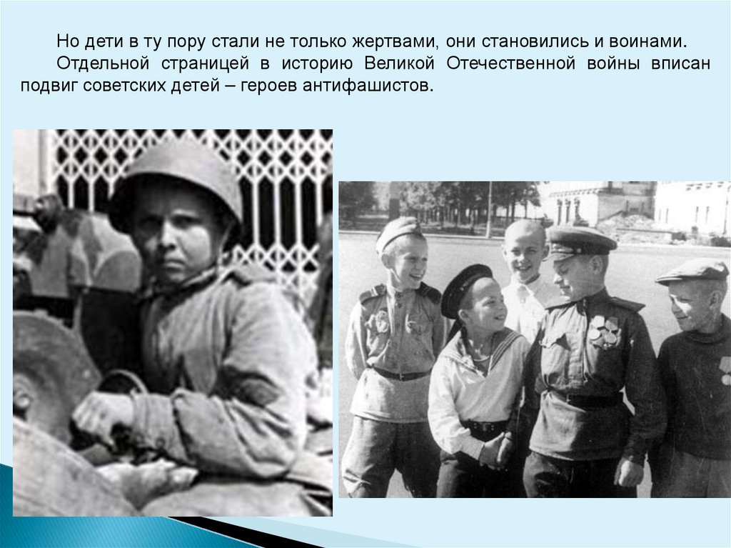 Но дети в ту пору стали не только жертвами, они становились и воинами.Отдельной страницей в историю Великой Отечественной войны вписан