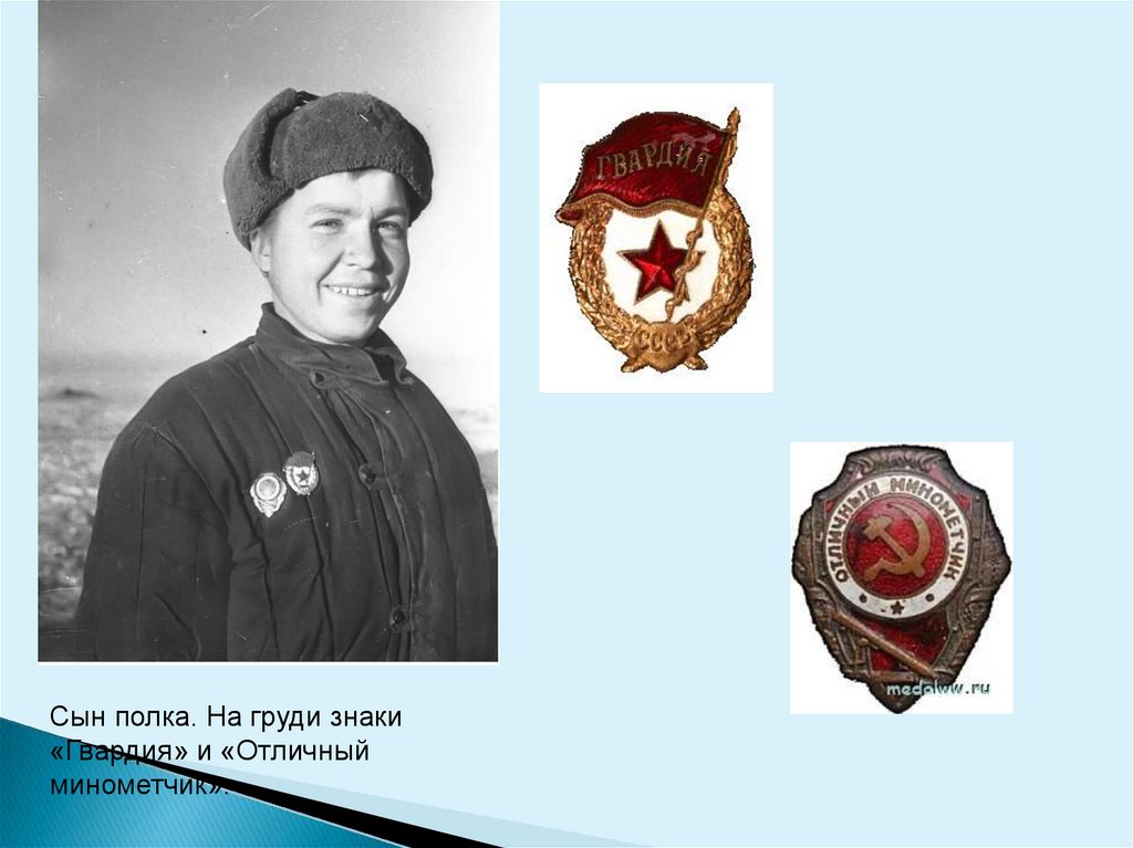 Сын полка. На груди знаки«Гвардия» и «Отличный