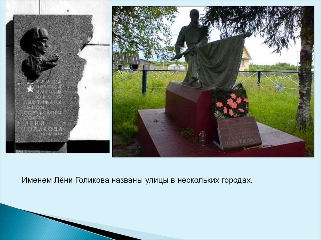 Именем Лёни Голикова названы улицы в нескольких городах.25.