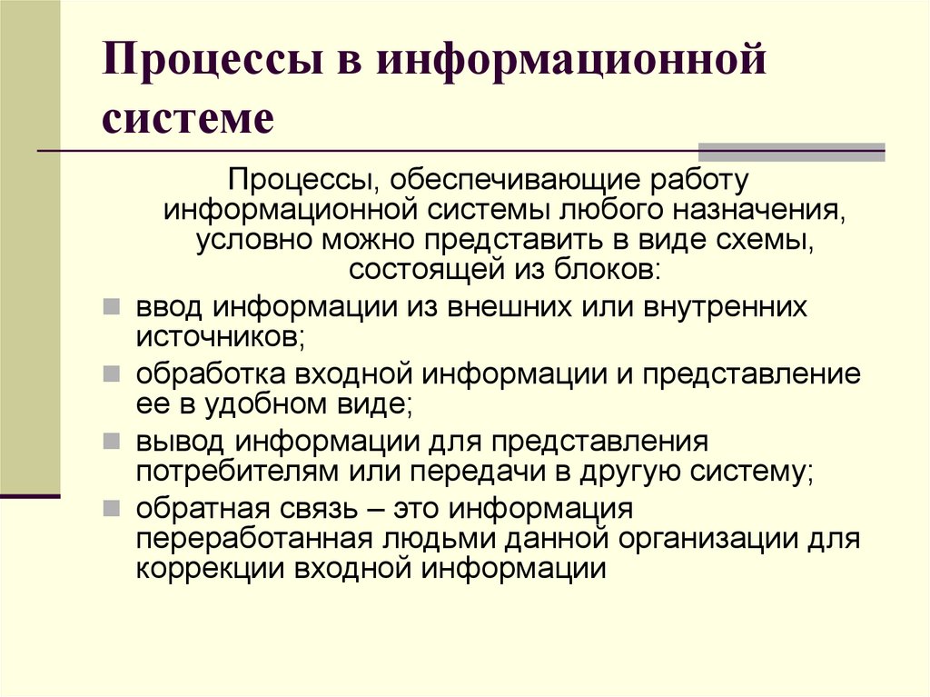 Процессы, обеспечивающие работуинформационной системы любого назначения,