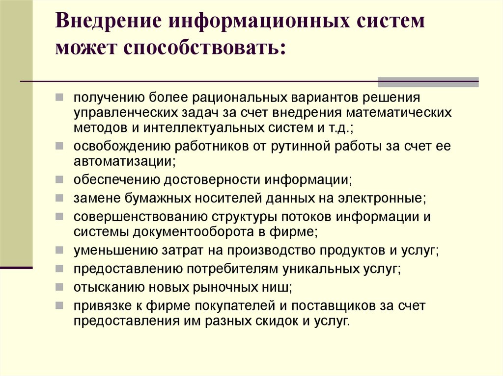 получению более рациональных вариантов решенияуправленческих задач за счет внедрения математических