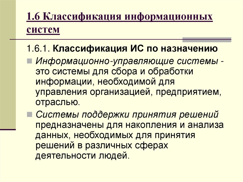 1.6.1. Классификация ИС по назначениюИнформационно-управляющие системы это системы для сбора и обработки