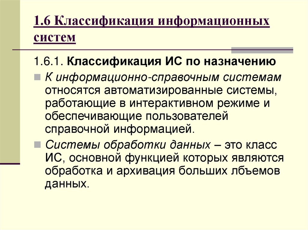 1.6.1. Классификация ИС по назначениюК информационно-справочным системам