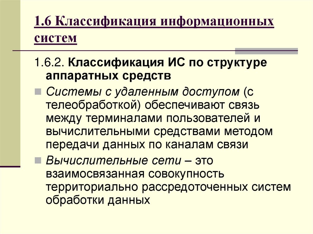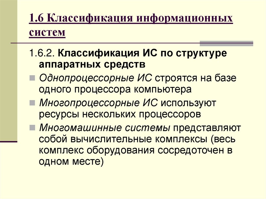 1.6.2. Классификация ИС по структуреаппаратных средств