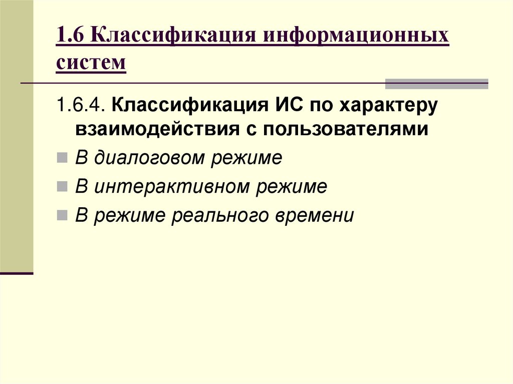 1.6.4. Классификация ИС по характерувзаимодействия с пользователями