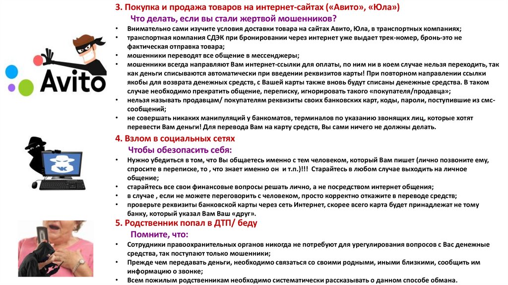 3. Покупка и продажа товаров на интернет-сайтах («Авито», «Юла»)Что делать, если вы стали жертвой мошенников?