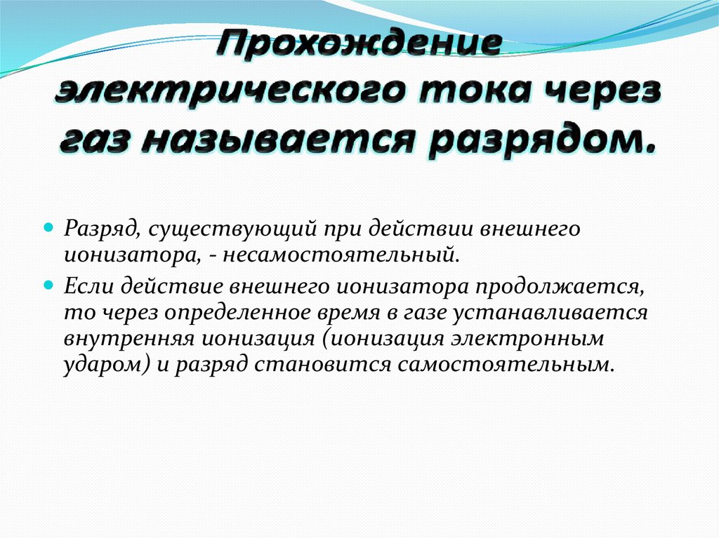 Разряд, существующий при действии внешнегоионизатора, - несамостоятельный.