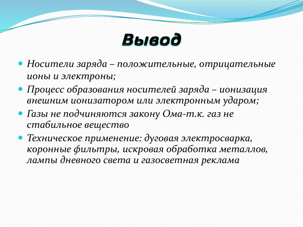 Носители заряда – положительные, отрицательныеионы и электроны;
