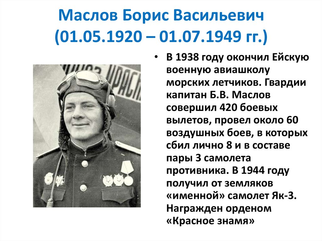 Маслов Борис Васильевич(01.05.1920 – 01.07.1949 гг.)