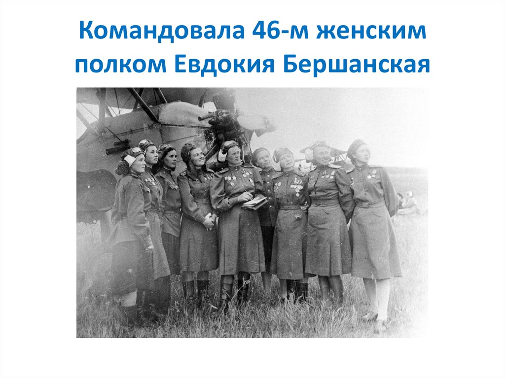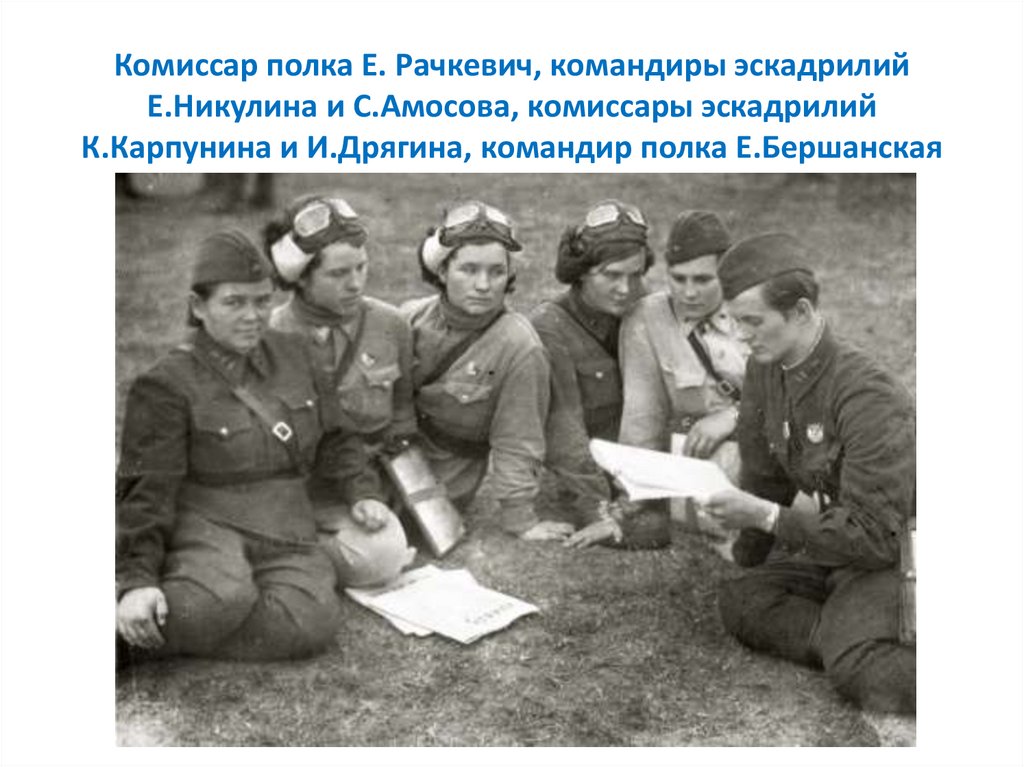 К.Карпунина и И.Дрягина, командир полка Е.Бершанская