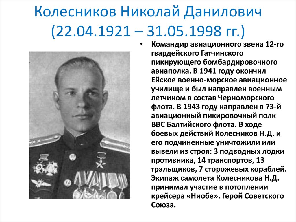 Колесников Николай Данилович(22.04.1921 – 31.05.1998 гг.)