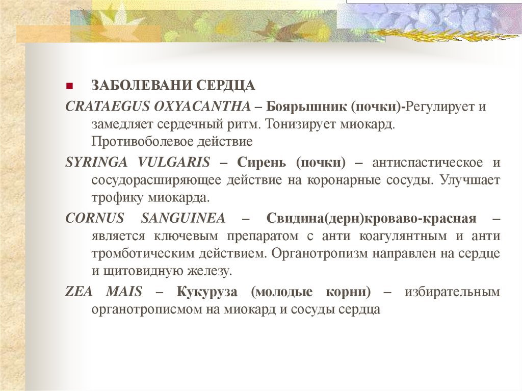 ЗАБОЛЕВАНИ СЕРДЦАCRATAEGUS OXYACANTHA – Боярышник (почки)-Регулирует и
