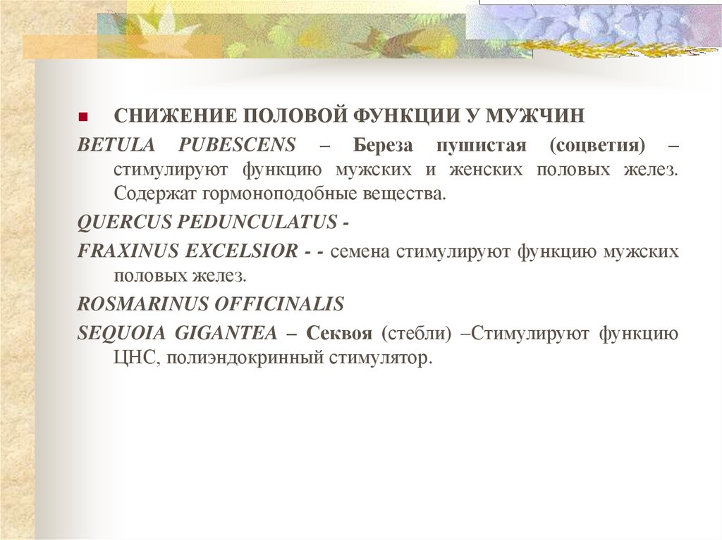 СНИЖЕНИЕ ПОЛОВОЙ ФУНКЦИИ У МУЖЧИНBETULA PUBESCENS – Береза пушистая (соцветия) –