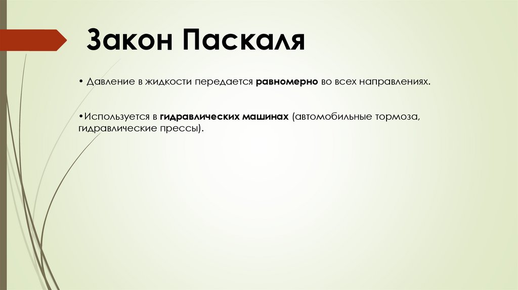 Закон Паскаля• Давление в жидкости передается равномерно во всех направлениях.