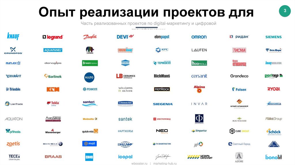 Опыт реализации проектов дляЧасть реализованных проектов по digital-маркетингу и цифровой